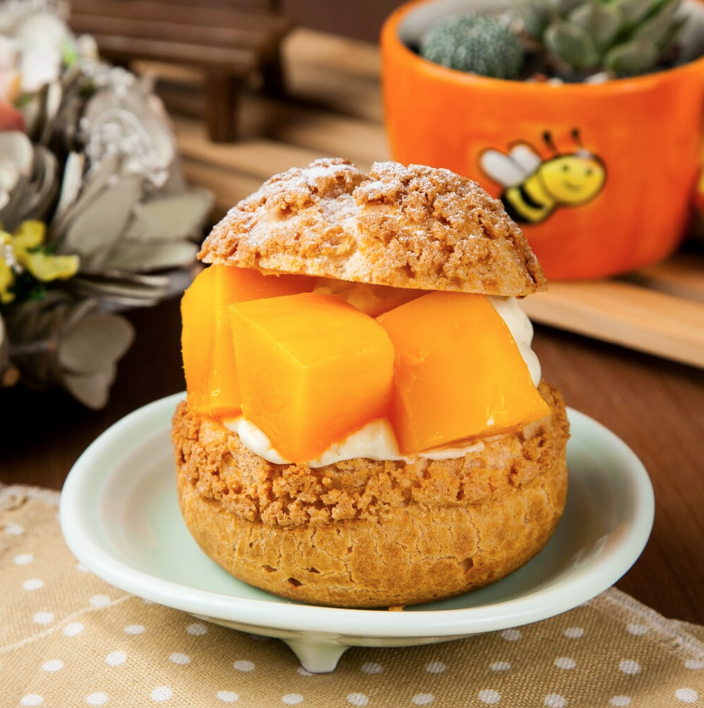 日式職人手作的Manabu學堂洋菓⼦則是準備了獲得「2016年台灣蛋糕技藝競賽季軍」的公爵夫人和現點現做的水果泡芙~公爵夫人的厲害之處在於,一入口會先品嚐到柳橙酸氣,後味則是伯爵茶、焦糖、榛果脆片等香氣層層浮現,多重口感在口中化開,酸甜交錯,清爽不膩口♡