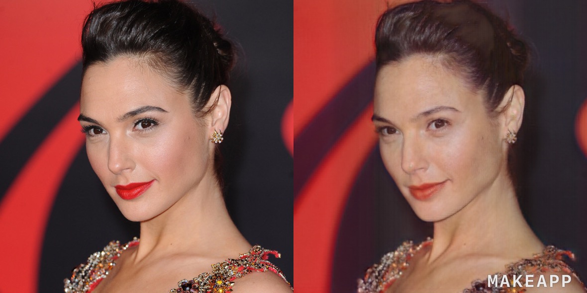 不知道這款App是不是特別偏心神力女超人...為什麼卸妝卸得那麼不徹底啊?臉頰、嘴唇依然那麼紅潤!還是...人家本來就這麼美呢?