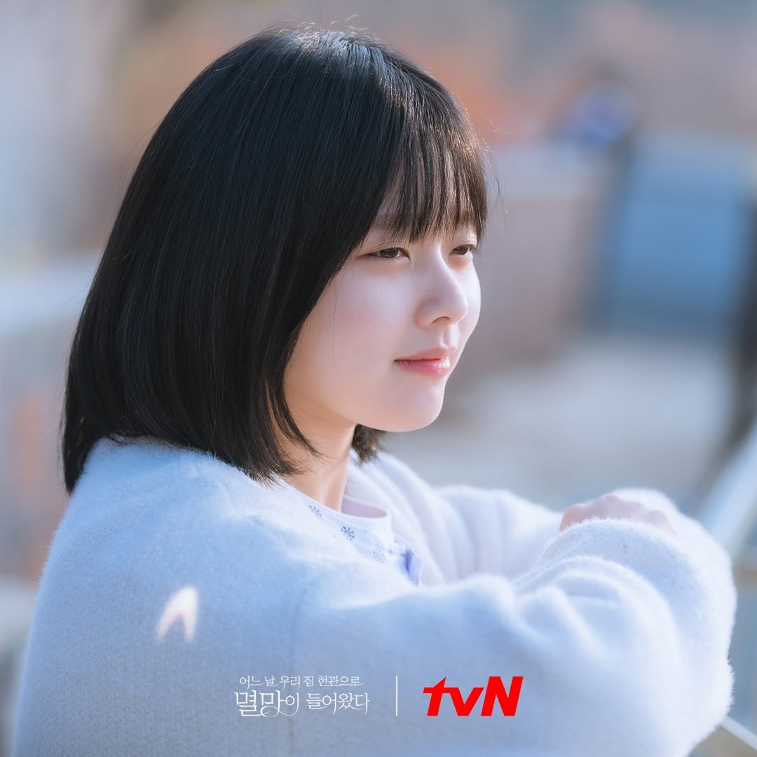 《某一天滅亡來到我家門前》講述萬物消失的源頭「滅亡」和爲了不死亡而簽下生命契約的人類「卓東景」,兩人之間所發生的奇幻愛情劇,而鄭知蘇飾演創造「滅亡」的神秘「少女神」。《某一天滅亡來到我家門前》劇情燒腦,尤其是鄭知蘇飾演的「少女神」,在劇情前半段觀眾都搞不懂她到底是個什麼樣的存在,鄭知蘇也將「少女神」這個角色層次演得十分出色,光看眼神就知道這個角色背後隱藏很多故事。
