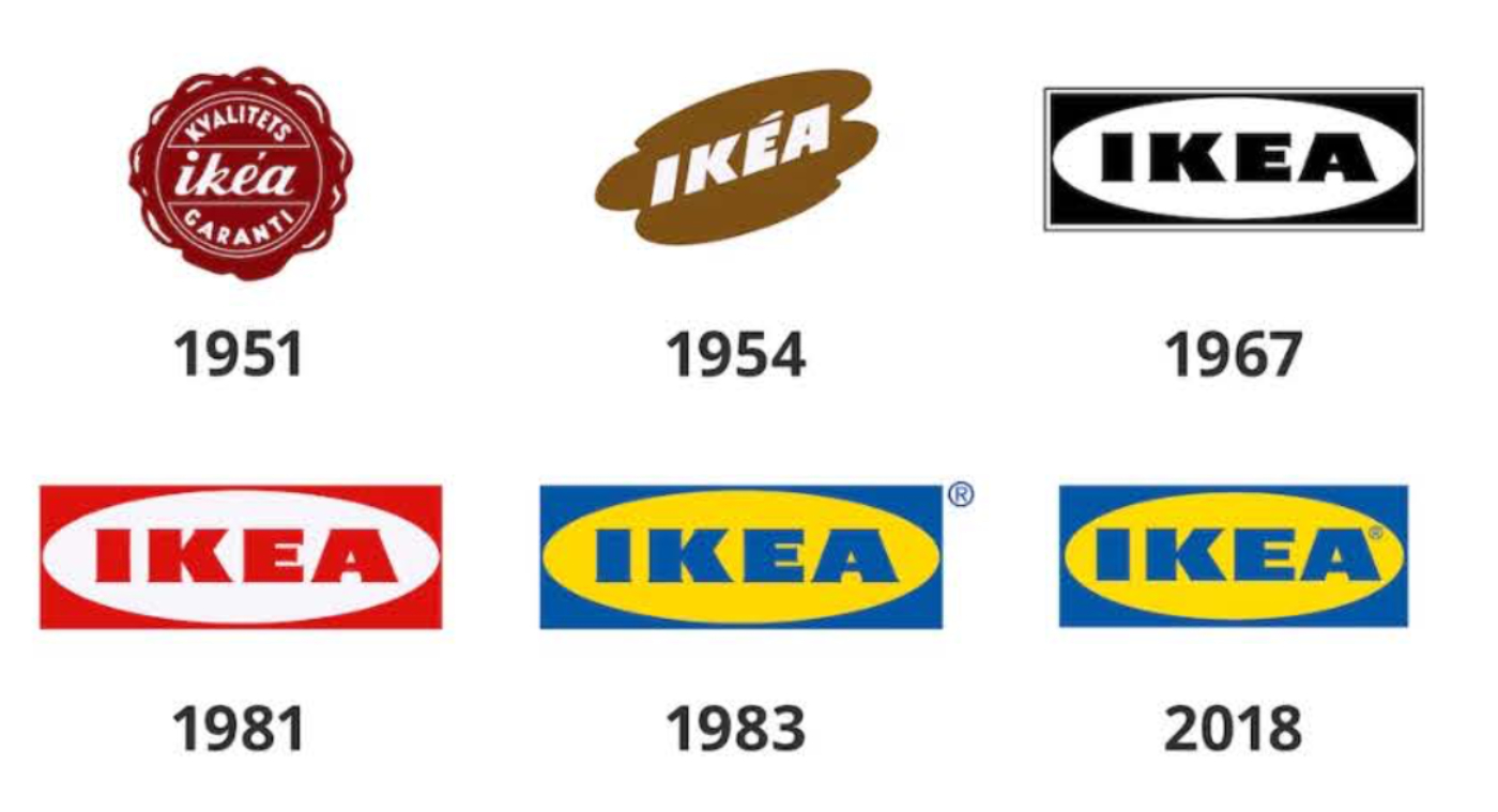 IKEA招牌的黃藍配色已成了大部人對品牌的印象,而這個品牌LOGO自1951年至今已變更過5次,從原先鄉村復古感的「瓶蓋造型」演變成較簡易的瑞典國旗配色、也能在數位時代能保持一致的風格和色彩效果。