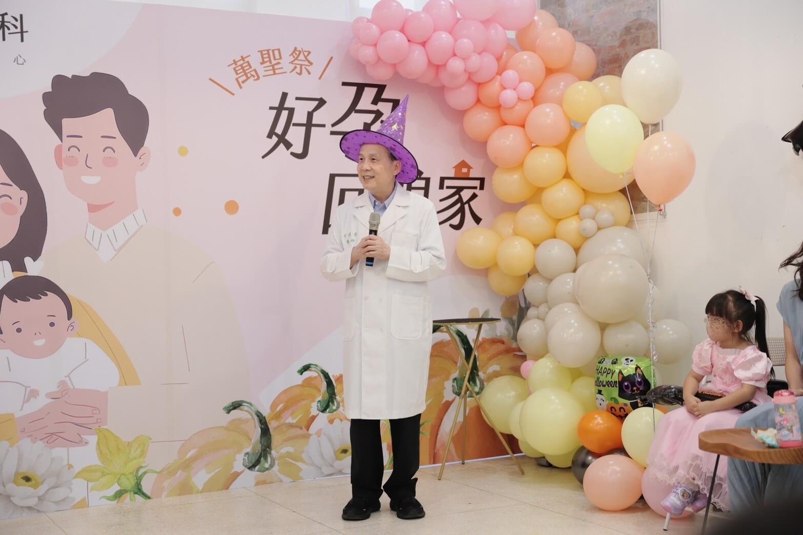 活動,邀請成功案例回娘家,分享他們的育兒經驗與好孕故事,院長黃建榮醫師也戴上巫師帽,與兒子黃珽琦副院長(小黃醫師),共同和好孕家庭共享幸福的喜悅。