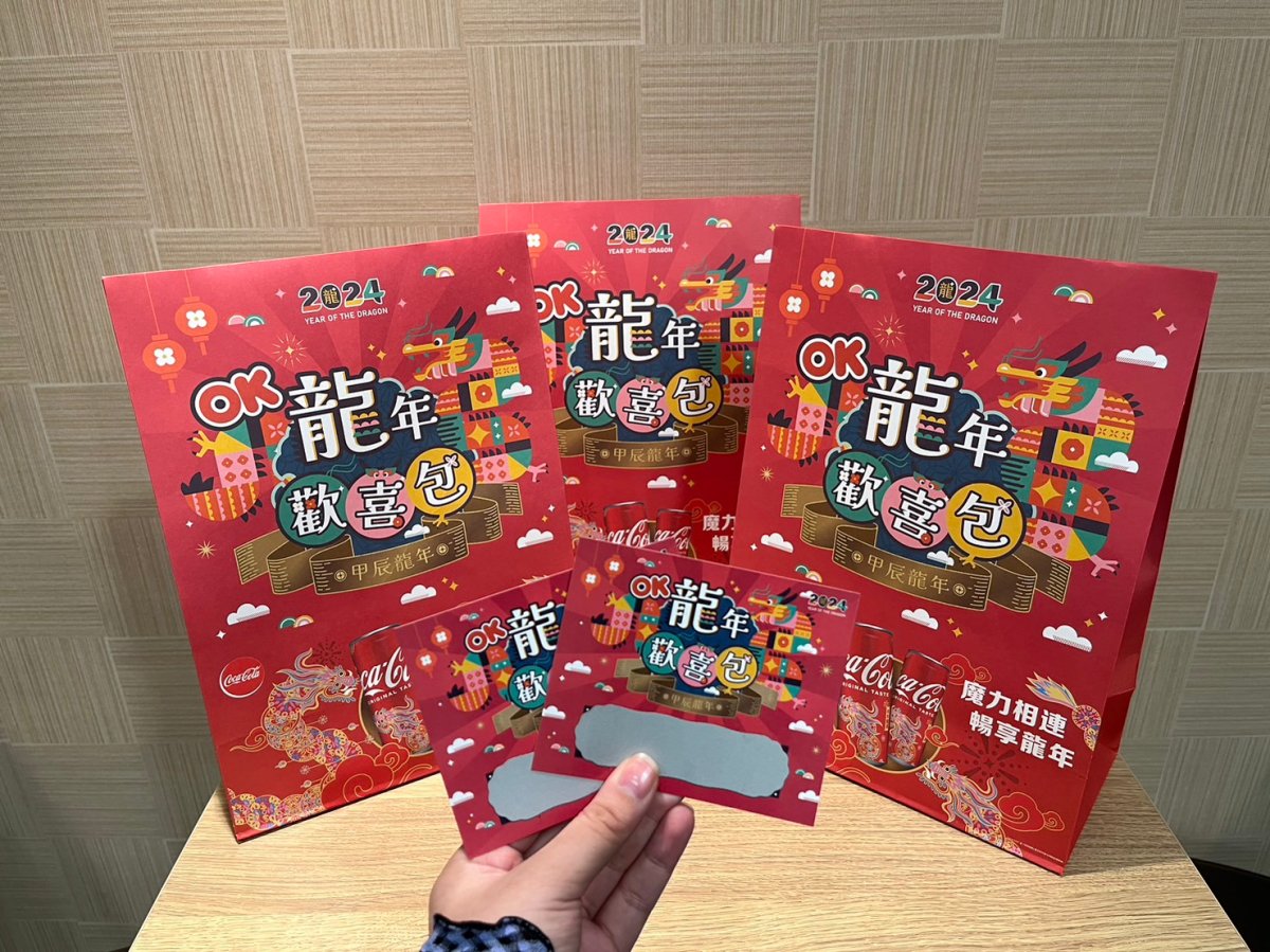 OKmart「龍年歡喜包」福袋兼具驚喜與實用,並有五款內容物組合,且抽獎為袋袋有獎,售價168元一個,內含7至8款糖餅、飲料;今年更首次開賣售價799元一包的「3C福袋」,內含無線藍牙耳機,還另隨機配置快速充電器、多角度桌面手機平板支架、三合一充電線、磁吸LED充電感應燈等商品。