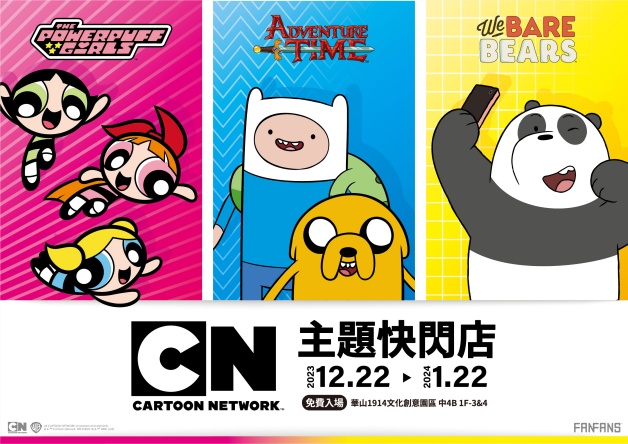 Cartoon Network~華納兄弟全球探索消費性產品部門授權「FANFANS粉粉」合作推出《卡通頻道CN主題快閃店》,地點位在「華山文創園區」,從2023年12月22日至 2024年1月22日,快閃一個月,一次集結《探險活寶》、《熊熊遇見你》,還有迎來25週年的《飛天小女警》,免費入場就可以拍爆買爆(笑),妞編輯特別整理「《卡通頻道CN主題快閃店》10大亮點」!(2024寒假展覽票價+地點資訊)