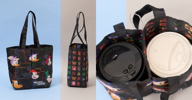「迪士尼可收納環保購物袋」共有「字母款」及「路線款」兩款,字母款以Q版英文字母和迪士尼角色穿插,其中還藏有「METRO」、「TAIPEI」及「MICKEY」等文字;路線款則是一種米奇與老朋友在台北觀光感!