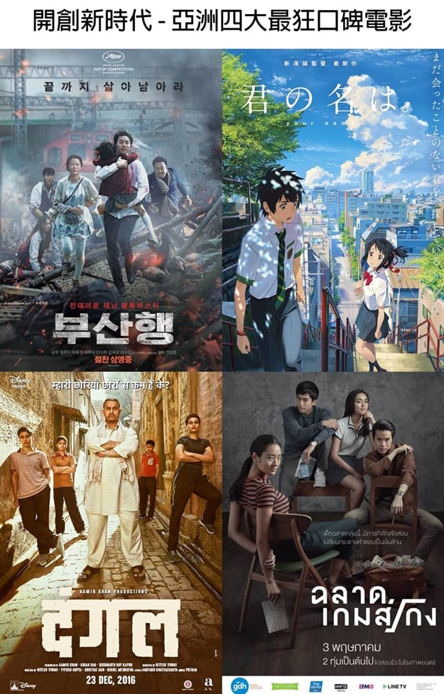 (3) 亞洲國家電影在台灣接連爆紅,證明良好口碑和引起觀眾共鳴也能取得票房成功,目前韓國電影的品質已不輸好萊塢,隨時有爆紅電影出現的可能性;新海誠還年輕大有可為;印度市場不斷壯大;泰國電影也有極高的水平。此外台灣未引進的中國電影【戰狼2】,僅在中國走紅就達到8億美金的恐怖票房也讓各國見識到中國電影市場的龐大商機,亞洲國家電影繼續衝擊著好萊塢,未來將有更多威脅好萊塢的亞洲電影出現。
