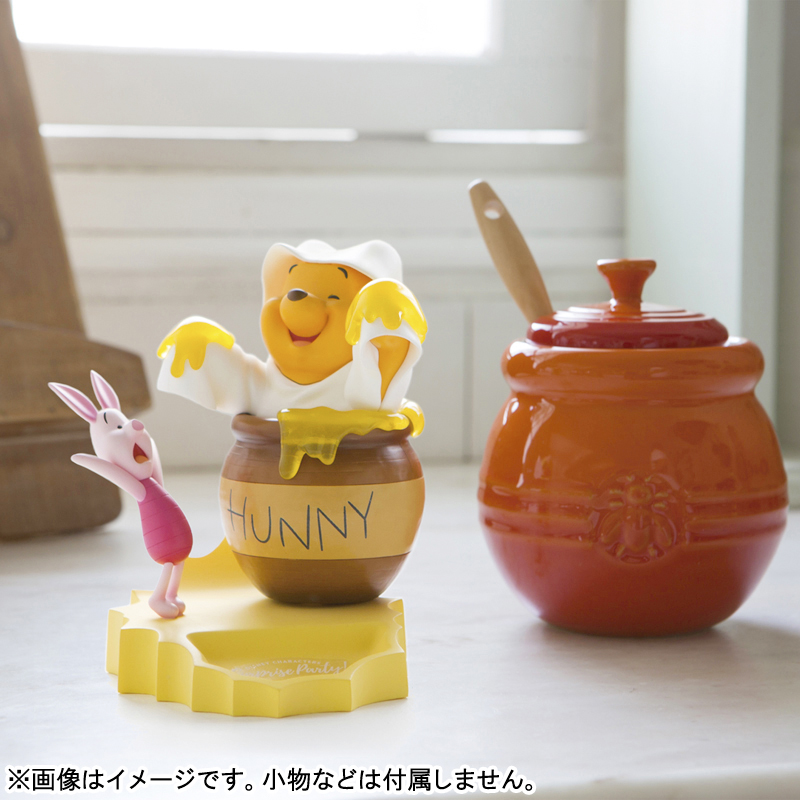 躲在蜂蜜罐裡的維尼,帶著滿滿的蜂蜜蹦出來~雖然一臉開心的樣子一點都不恐怖,還是把小豬嚇了一大跳!