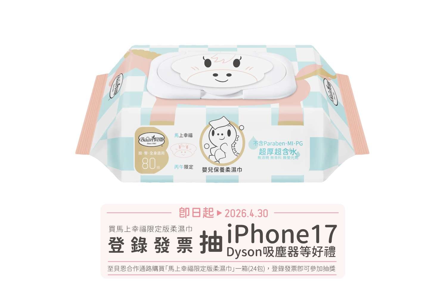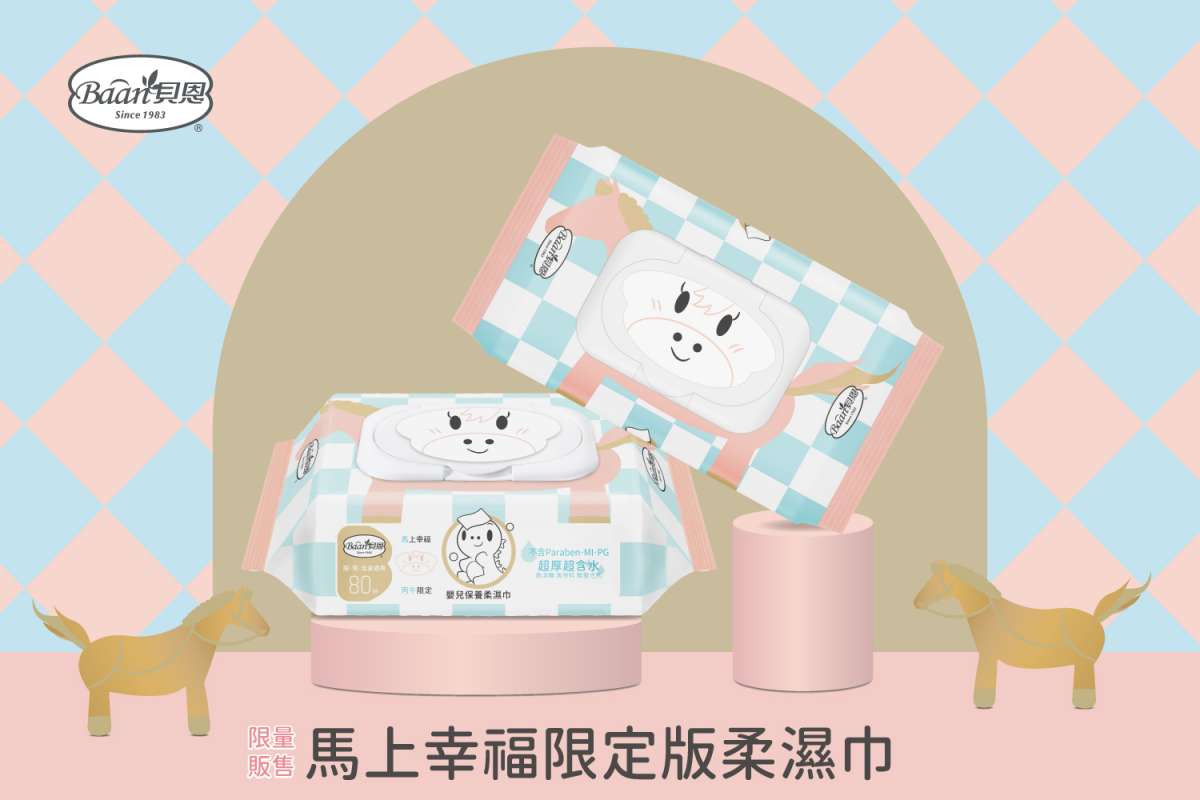 今年推出的「馬上幸福」馬年限定版,以粉嫩溫馨的視覺設計,讓柔濕巾不只是實用的清潔用品,更成為居家與外出攜帶的療癒小物。數量有限,售完即止,想收藏的爸比媽咪可至貝恩官網或官方合作通路選購,為新的一年提前準備滿滿祝福。貝恩官網購買連結:https://baan.life/ba02SBZJf