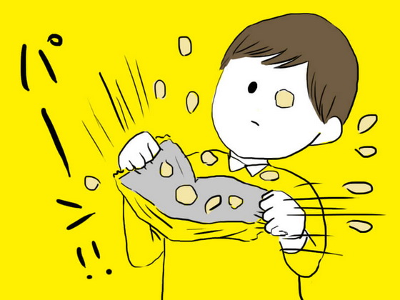 8.想一口解決包裝內剩下的餅乾、洋芋片,卻倒得滿臉、全身