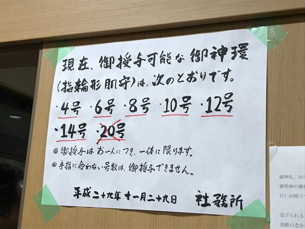 以為這樣就夠困難了嗎?不、還有更多關卡要闖!這枚御守統一會在當日九點在神社境內的社務所開賣,並且同時宣布「本日販賣尺寸」,意思是這款純手工打造的銀戒御守因為並非量產,所以每次製作的尺寸都不一樣,當場必須有你戴得下的尺寸,才會賣給你,同時也代表著也無法替親朋好友購買,必須本人到場。