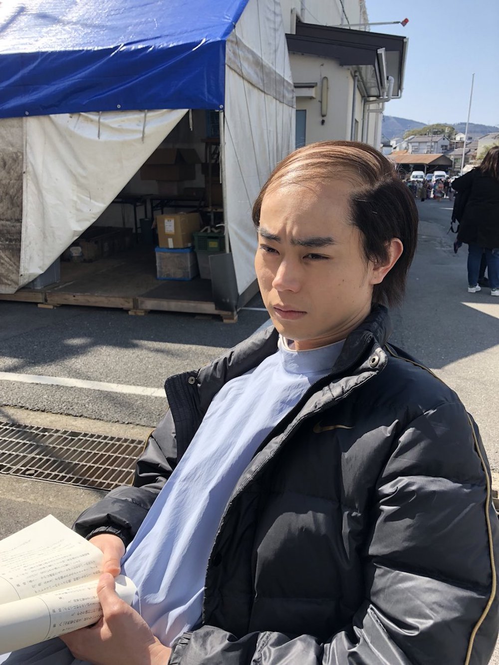 在片場休息,頂著劇中的禿頭造型,看似厭世的表情,一瞬間真的讓人沒辦法認出他可是菅田將暉啊!