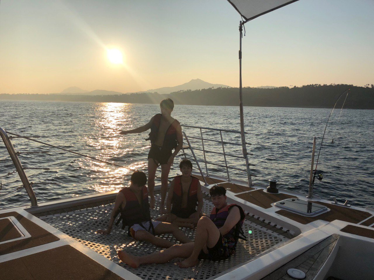 沒錯,這次不是泡游泳池,升級成直接出海泡海水了(笑)!在2016年拍攝韓劇《花郎》而結緣的V、朴敘俊、朴炯植,組成花郎三劍客後漸漸擴增成員,崔宇植以及歌手Peakboy加入後成為5人「泡澡Line」,幾個大忙人終於抽空幾天前一起搭乘遊艇出遊,朴敘俊更與崔宇植在SNS上分別曬出浪漫的互拍照及影片(這兩個什麼甜蜜氛圍啦XD)。