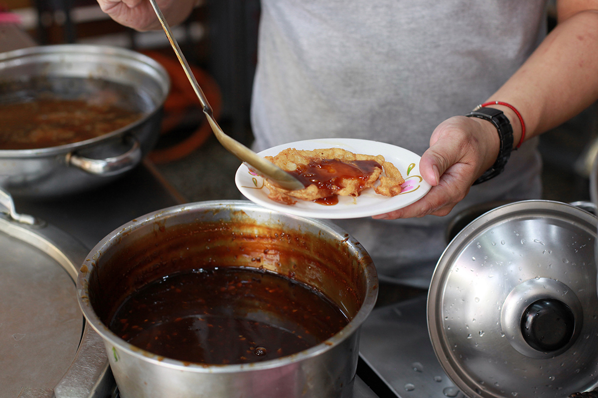 「滷豬腳」也是店家特調老滷汁慢火熬煮,入口即化的豬腳完全不會有讓女孩感到害怕肥膩感,而是濕潤Q彈還帶點綿密。(有種膠質殘留在嘴中的迷人口感)店內使用的食材皆是老闆每日清晨5點親自至市場挑選,像是排骨堅持要用豬小排部位、魚一定要新鮮現宰,他笑說:「要經過自己的手把關才會安心。」