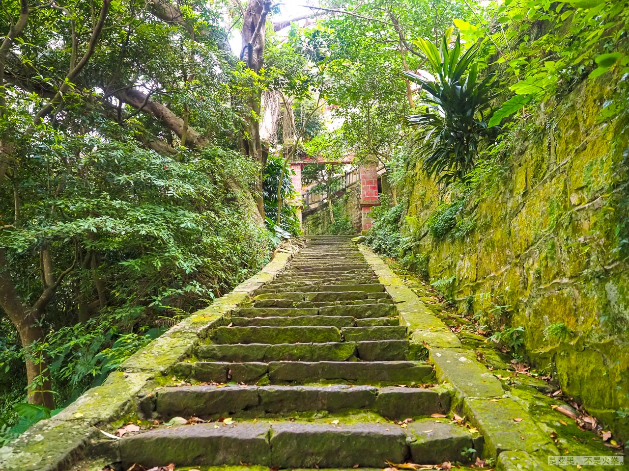 若不轉進開山凌雲寺,就是福隆山主道續行,途中有緩坡及石階,兩側多為茂密的樹木與綠葉,這裡竹林也較多一些,當風一吹過就能聽見竹子「尬尬尬~」,這段步道是蠻為幽靜的小道。