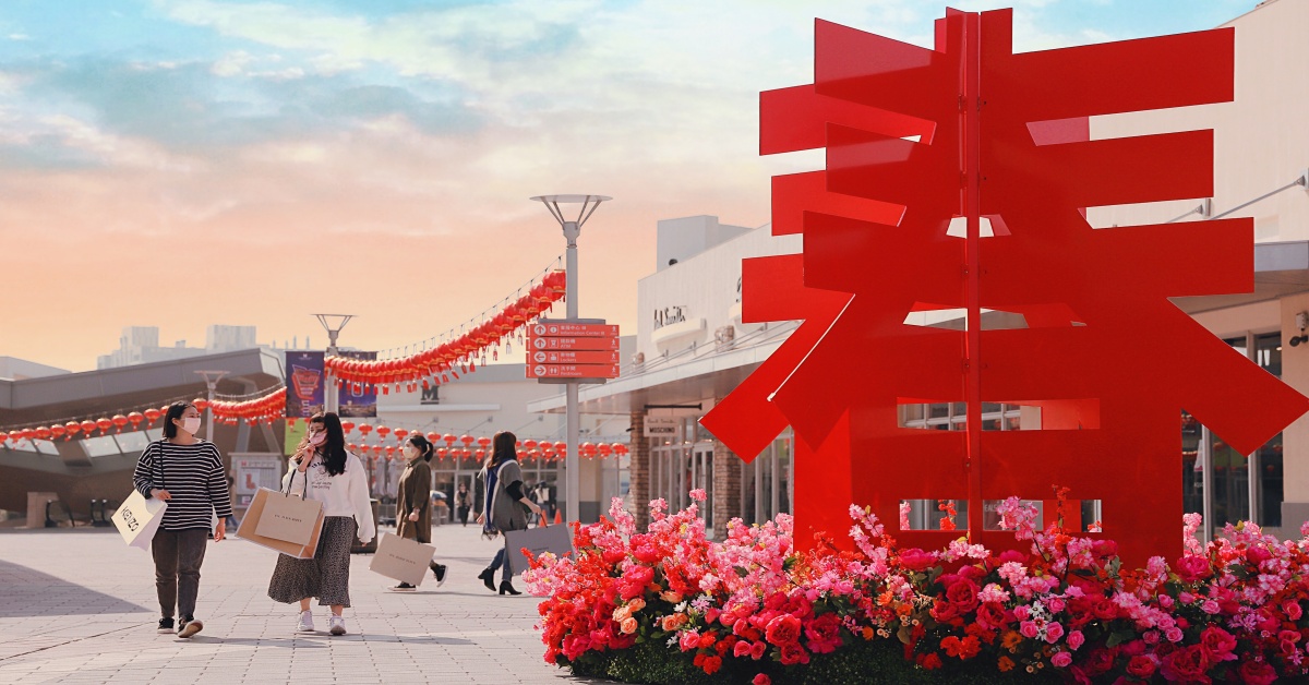 而在三期廣場,則以「春櫻綻放・花開圓滿」為概念,在3.3米的立體「春」字造景上,以櫻花、牡丹等各式花材進行360度的圍繞式點綴!第五大道小廣場上,也擺放著「比人高」的巨型爆竹與復古小販攤車,傳統的喜慶佈置超有年味,很適合全家大小一同走春、留下應景美照!