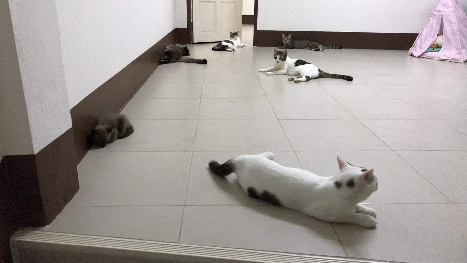 事實上,家中是養了3隻貓咪,牠們每天坐着看鳥兒經過、玩玩玩具、與蟑螂追逐,就這樣輕髮愉快過日子。