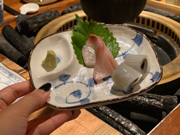 「刺身」主要有兩款,分別為「青魽」和「花枝」,青魽屬於日本料理店的高級食材,肉質鮮美豐腴,而紋甲花枝不但肉質厚實,還以具有螺旋狀的「鳴門卷」為概念,加入海苔,鮮甜中又帶點海味!