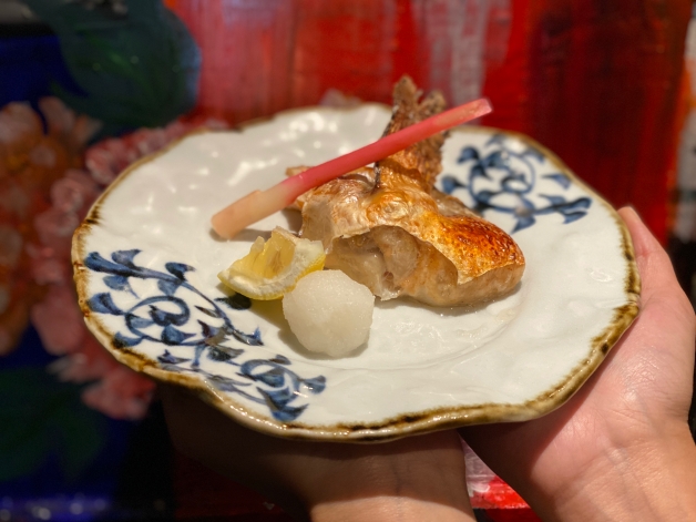 烤物就是居酒屋裡不可或缺的「鹽烤鮭魚下巴」,酥脆口感下帶有豐富皮脂,聞起來香氣濃郁,吃起來則是肉質鮮嫩。
