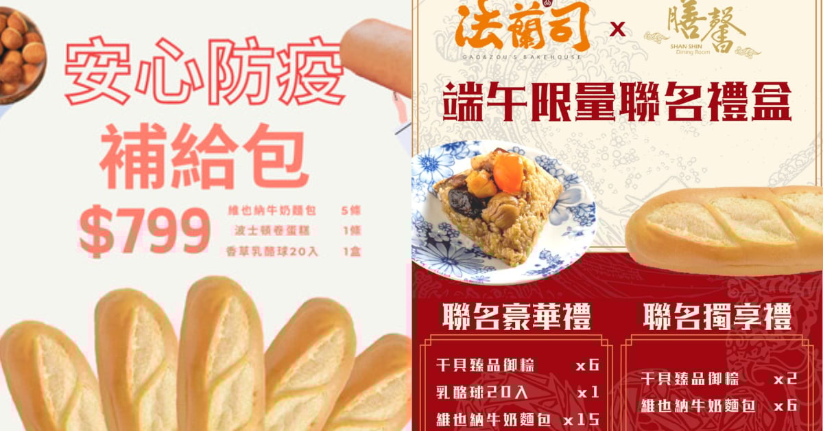 首創訂閱制!訂閱人氣團購聖品「維也納牛奶麵包」,每個月可以指定日期直送家旁邊的7-11,每月小量送達,不用辛苦揪團購也不用怕冰箱冰不下。法蘭司烘焙防疫期間還推出了安心防疫補給包,裡面除了有招牌的維也納牛奶麵包,還有波士頓卷、乳酪球,期間限定防疫優惠價還有提供宅配服務。迎接端午到來,法蘭司也聯手「米其林餐盤推薦台菜餐廳」膳馨推出端午限量聯名禮盒,禮盒內除有法蘭司招牌維也納牛奶麵包、乳酪球,還有膳馨全新創作「臻品干貝粽」!遵循古法製作,純手工拌炒嚴選優質糯米,包覆鮮甜的北海道干、軟嫩多汁三層五花、鹹蛋黃、香菇與清香栗子,層層堆疊的道地美味絕不添加防腐劑。