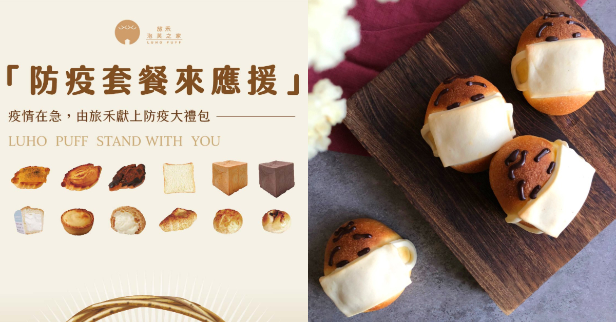 台中知名烘焙店旅禾泡芙之家,店內商品「老芋仔」包裹大甲芋頭內餡,小巧的麵包各個都戴著口罩,原來是店家想提醒大家口罩不離身,可愛的造型引起話題。旅禾泡芙之家防疫期間也推出居家防疫大禮包,三種套餐個包含胚芽鹽可頌、蔓越莓乳酪餐包、羅宋、北海道泡芙、乳酪塔、戚風蛋糕、生吐司等豐富品項。凡提前兩天預訂商品,台中地區還有滿520元即免運的優惠活動。
