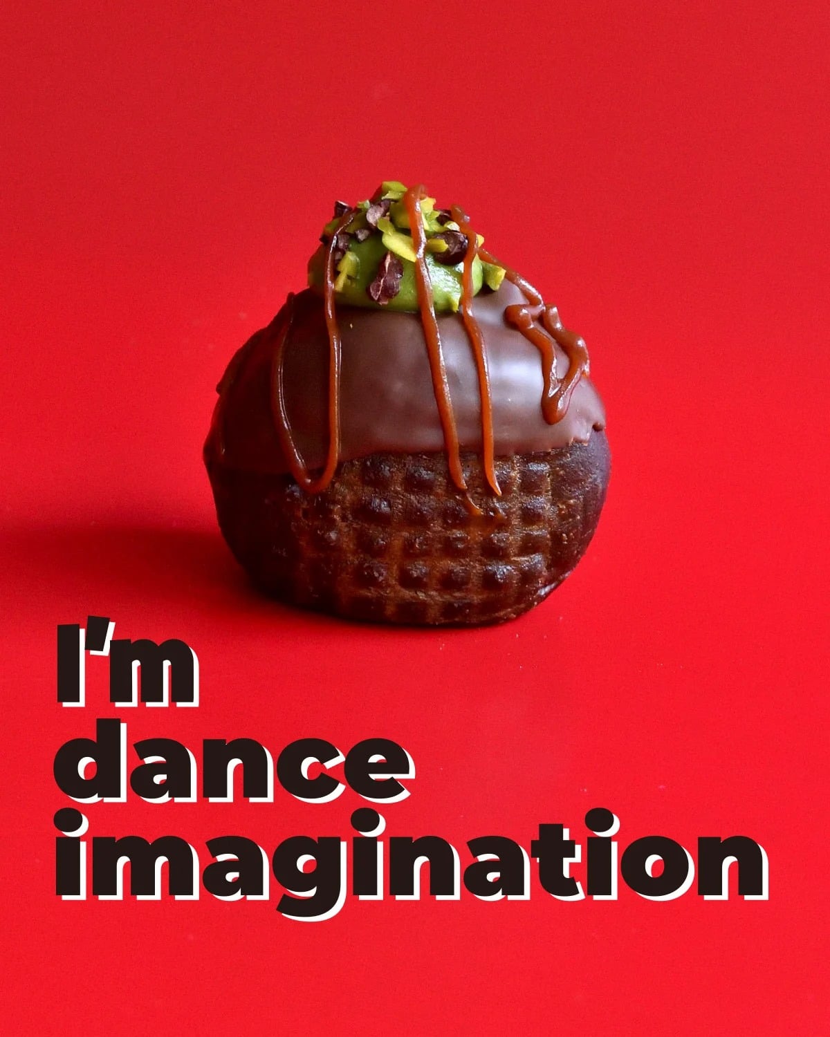 「I'm dance imagination」靈感源自同名主打歌〈ENEMY〉音樂錄影帶中的場景,將濃郁的抹茶奶油與溫潤香甜的焦糖醬填入抹茶生甜甜圈裡。外層包裹著牛奶巧克力,再淋上焦糖醬,最後點綴開心果與可可豆碎。一口吃下即可享受清香抹茶、濃厚焦糖,以及微苦巧克力,共同交織出的華麗滋味。