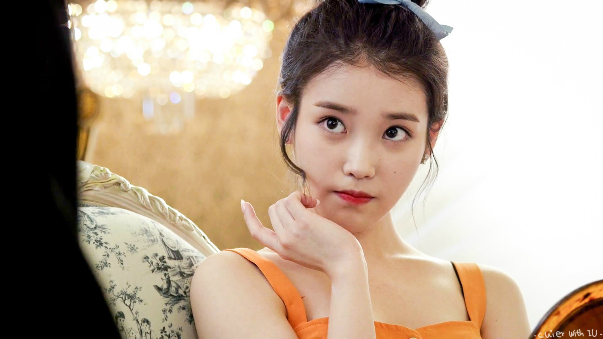 這幕是IU在《製作人那些事》劇中少有的撒嬌,就是在粉絲見面會上裝一下可憐,為的就是贏得粉絲們的支持囉。