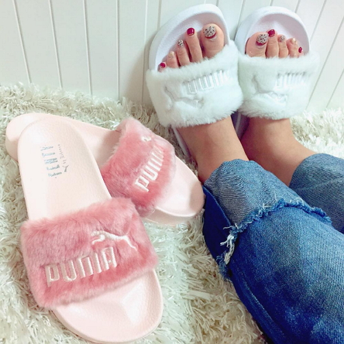 美國音樂天后蕾哈娜 × PUMA合作的毛毛拖鞋,現在是歐美非常搶手的限量商品。平凡的拖鞋鞋面加上絨毛後,少了頹廢,多了一點奢華嘻哈感;此外,在蕾哈娜光芒的加持下,這雙毛毛拖鞋更是充滿話題,星味十足。這款毛毛拖鞋除了是蕾哈娜平常的愛用鞋款外,也是歐美model、名媛們當紅的時尚配件。