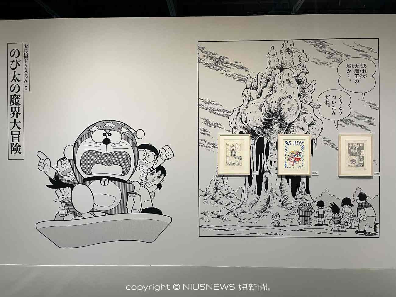 來到「黑白作品展區」則是能欣賞到多達17幅,藤子・F・不二雄老師珍貴的黑白漫畫復刻原畫。而其細膩的線條筆觸,也完整記錄著老師在不同年代的畫風演變,以及《哆啦A夢》豐富多樣的藝術風格。