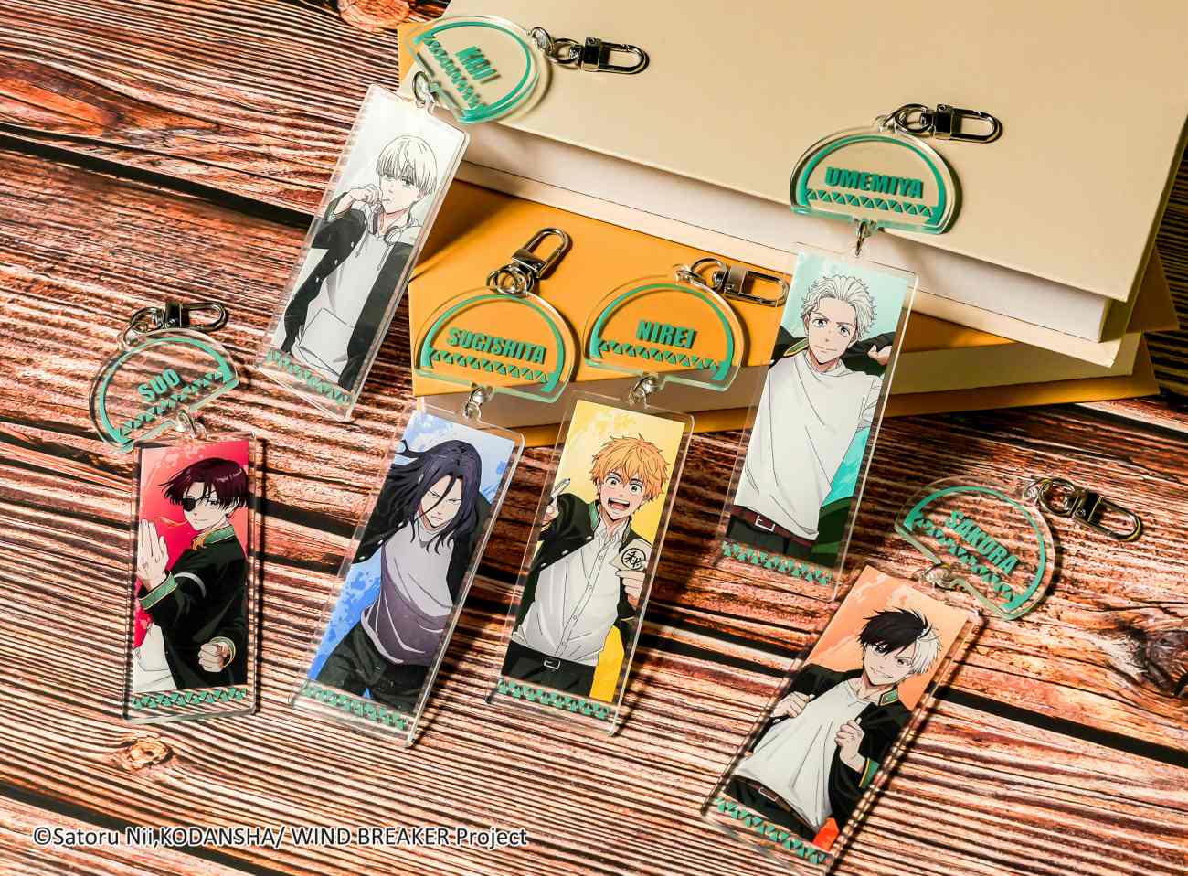 誰能抵擋得了制服的魅力啊!本次推出的周邊新品,不光擺在桌上就賞心悅目的劇照「組合立牌」;蘇枋和櫻的「壓克力存錢筒」;絢彩背景搭配立體潑墨字樣的角色盲抽「光釉徽章」,還有滿版「長門簾」;精心設計的防風鈴造型「吊飾」。帥氣制服立繪真的超級欠收!