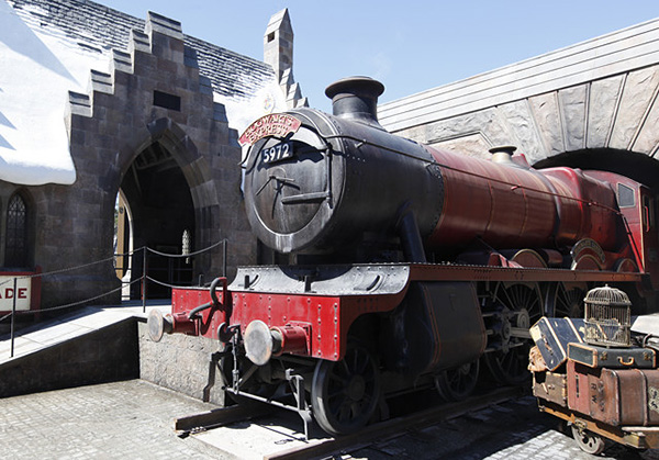 在哈利波特的園區內,遊客穿過森林,迎面而來的會是活米村的入口,搭配著電影的配樂,那種活生生置身在魔法世界的衝擊,是無法言喻的感動,跨過入口後右手邊立刻可以看見霍格華茲特快車與車掌面帶笑容地歡迎你,讓人恨不得跳上火車,前往霍格華茲。左手邊則是活米村內著名的蜂蜜公爵與桑科的惡作劇商店,櫥窗裡的裝飾品像是被施了魔法一般的動著,讓人不禁多看他兩眼。