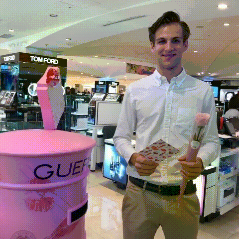消費者可現場直接將明信片投遞至親親郵筒,讓嬌蘭為你傳遞愛意!於11場活動現場購買KISSKISS 法式之吻或紅寶之吻高訂唇膏(乙組),即由帥氣外模為您獻上一朵法式浪漫玫瑰。