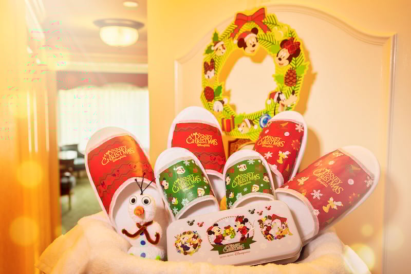 住宿方面只要在聖誕期間內入住主題酒店,都可獲贈一套期間限定的聖誕贈品(好想要!!)包括個人用品包、拖鞋、門貼裝飾...等等,讓你連入睡前,都能感受濃濃的冬日耶誕歡樂氛圍。