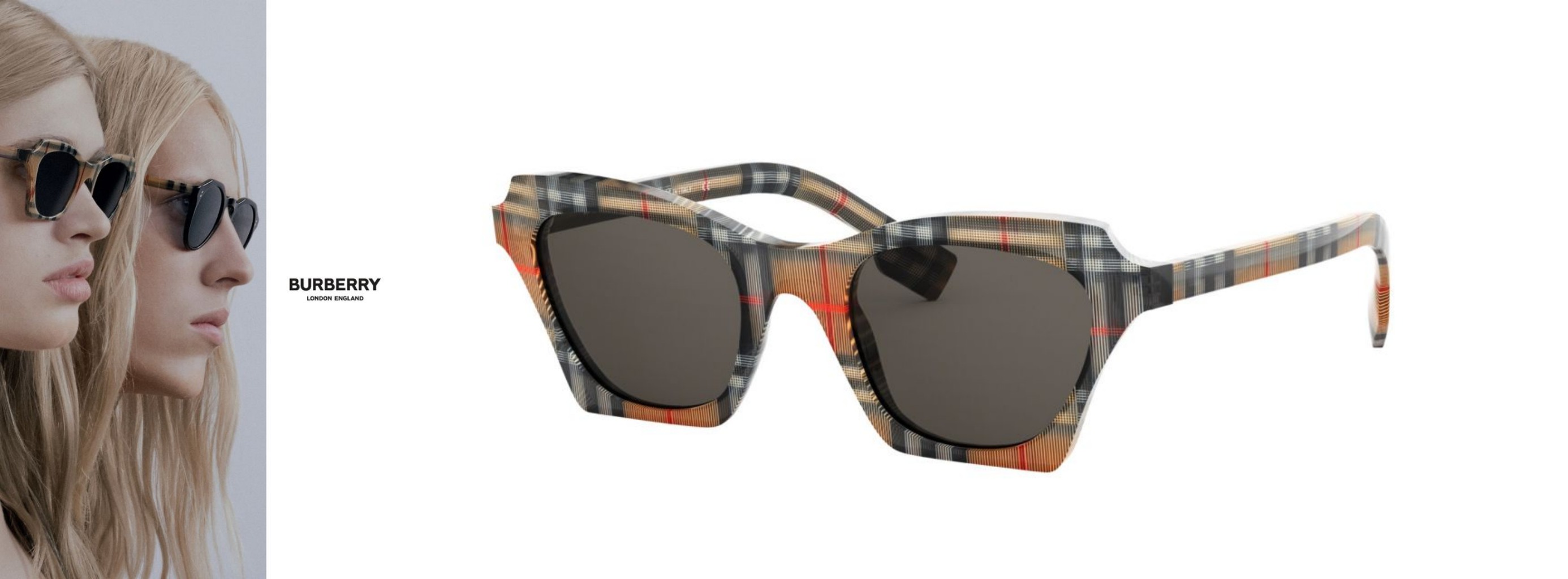 此外,BURBERRY BLUEBIRD藍知更鳥系列以20年代的螺旋槳等航空元素為靈感,結合品牌經典復古格紋,推出不規則四邊形鏡框,以調皮且吸睛的設計展現英倫復古精神,格紋能這麼浮誇又時髦的,BURBERRY果然是數一數二的格紋先驅。