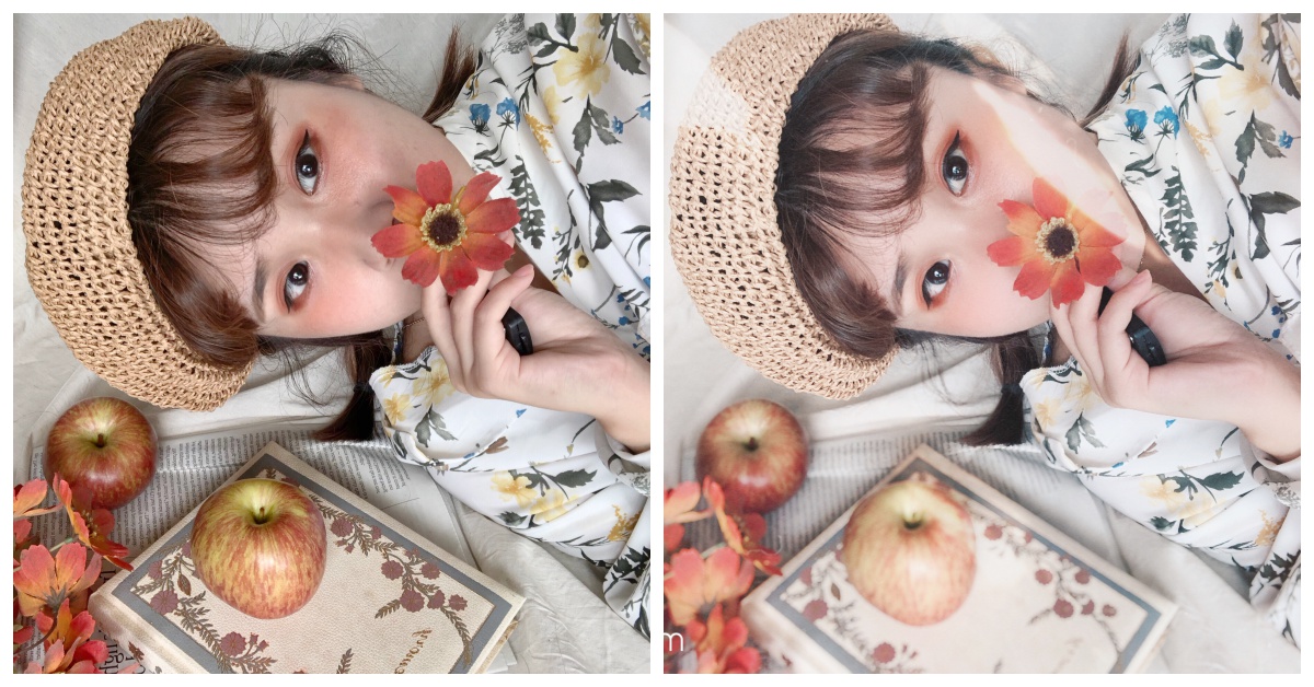看完杯緣子示範後,接下來就來看看真人示範的使用對比圖唄~以下左方皆為使用內建相機拍攝的原圖,右方為套用《氧氣相機》濾鏡的照片。