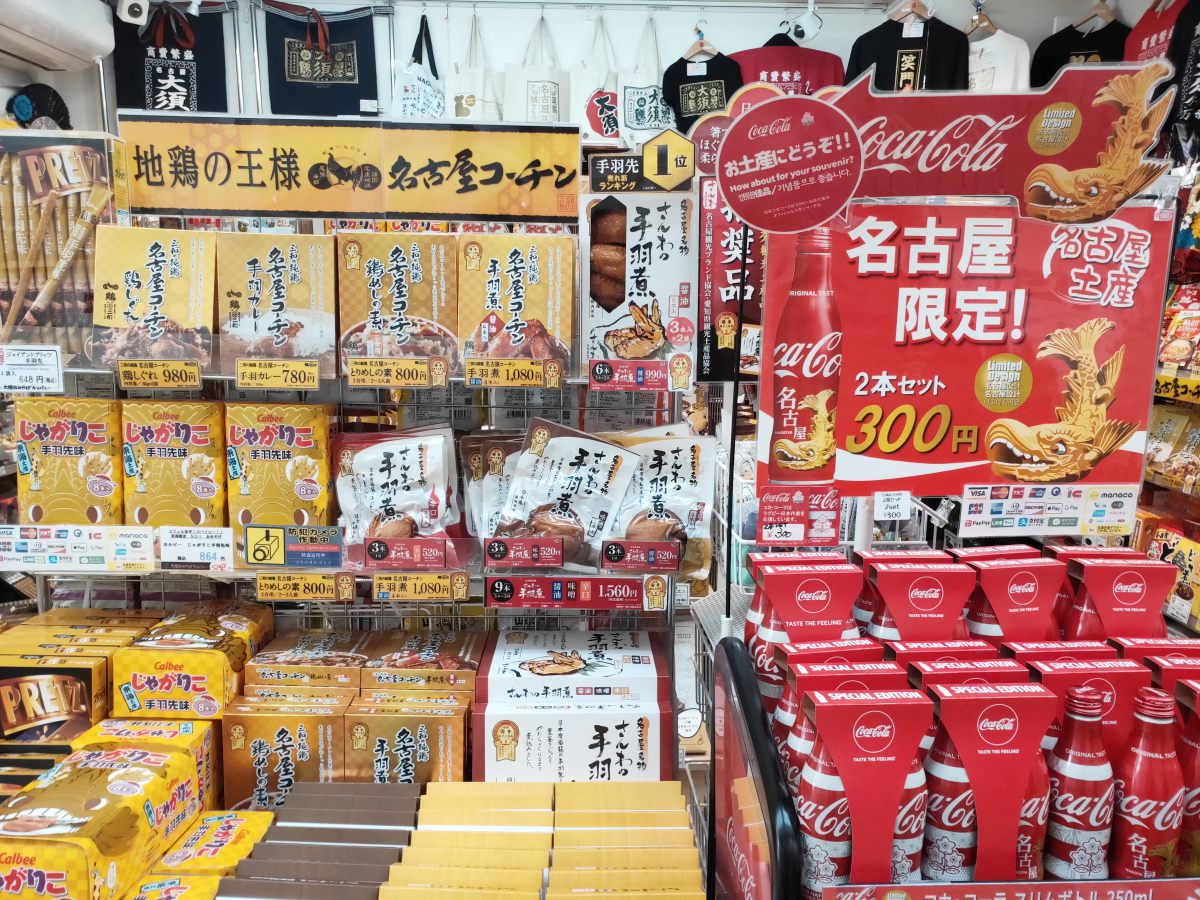 這家店裡有很多名古屋具代表性的伴手禮,例如名古屋限定的鐵瓶裝可樂,或是名古屋雞翅,還是名古屋城上可以看到的金鯱裝飾物,都相當充滿名古屋的在地元素。金色外包裝的伴手禮相當多,相信收到的朋友也會覺得備受重視吧。