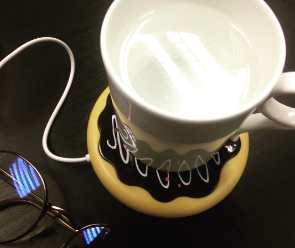 這些USB杯墊加溫器的造型還愈做愈可愛、愈做愈輕薄,第一代的看起來還有點像小型電磁爐,感覺放在辦公桌上有點太「隆重」,感覺在煮食物一樣。現在則大進化,變得像是個可愛小擺飾。