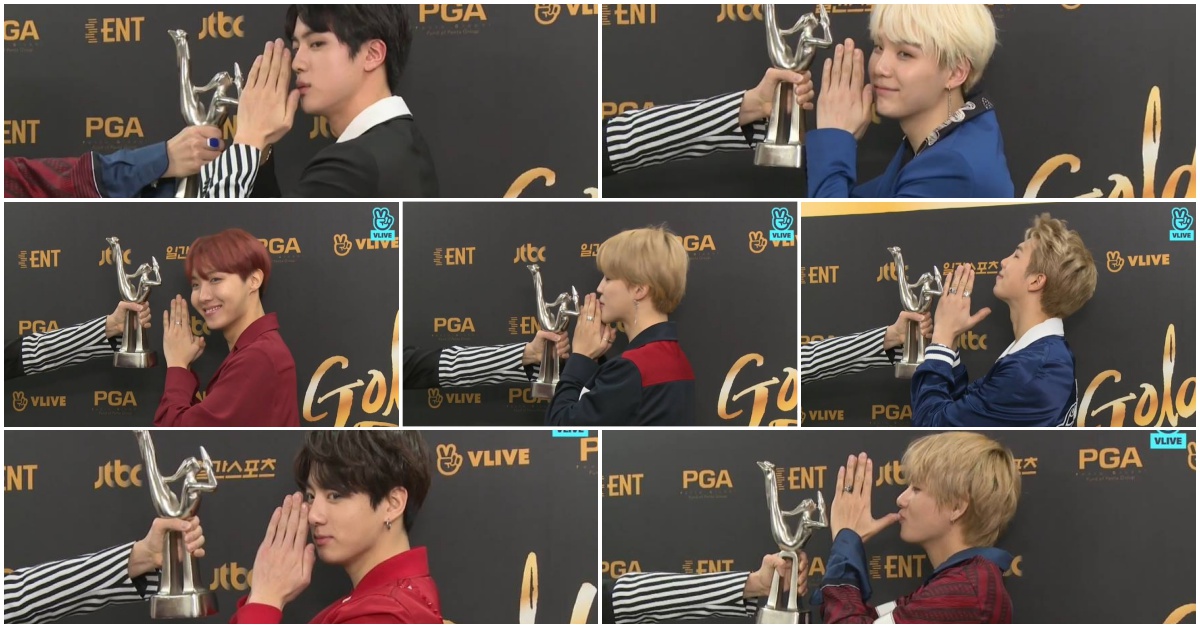 每次獎項公布前的那短短幾秒,根本彷彿按下時間暫時停止鍵,台上台下一起屏息,昨晚唱片部門大賞公佈前,鏡頭就拍到防彈少年團的Jimin已經開始自製緊張音效(外加左右打拍子)隊長RM緊張到呈現祈禱狀態,宣布瞬間RM開心跳起,完全沒發現身下椅子也同時飛倒(不愧是隊內公認的破壞王XD),成員們馬上擁抱成一團團魂爆發,場面超感人!(影片0:40處開始)