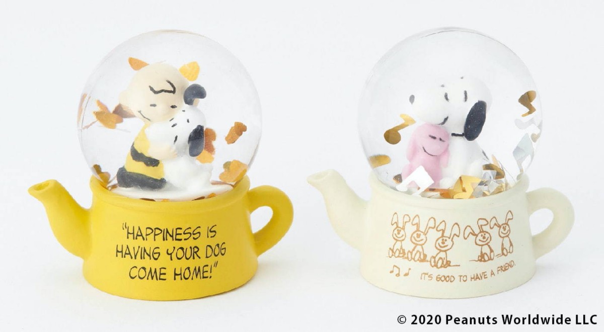 首先要介紹妞編輯心中覺得最療癒的商品,玩偶與水晶球。玩偶有查理布朗、史努比、糊塗塌客三款可選,角色們瞇眼微笑地抱著愛心的模樣,可愛得讓人看了不禁會心一笑;水晶球則是以茶壺為底座,以查理布朗&史努比、史努比&兔子相擁為造型,在查理布朗的底座上還寫著「happiness is having your dog come home」(幸福是有心愛的狗狗回家),看了真的好暖心。