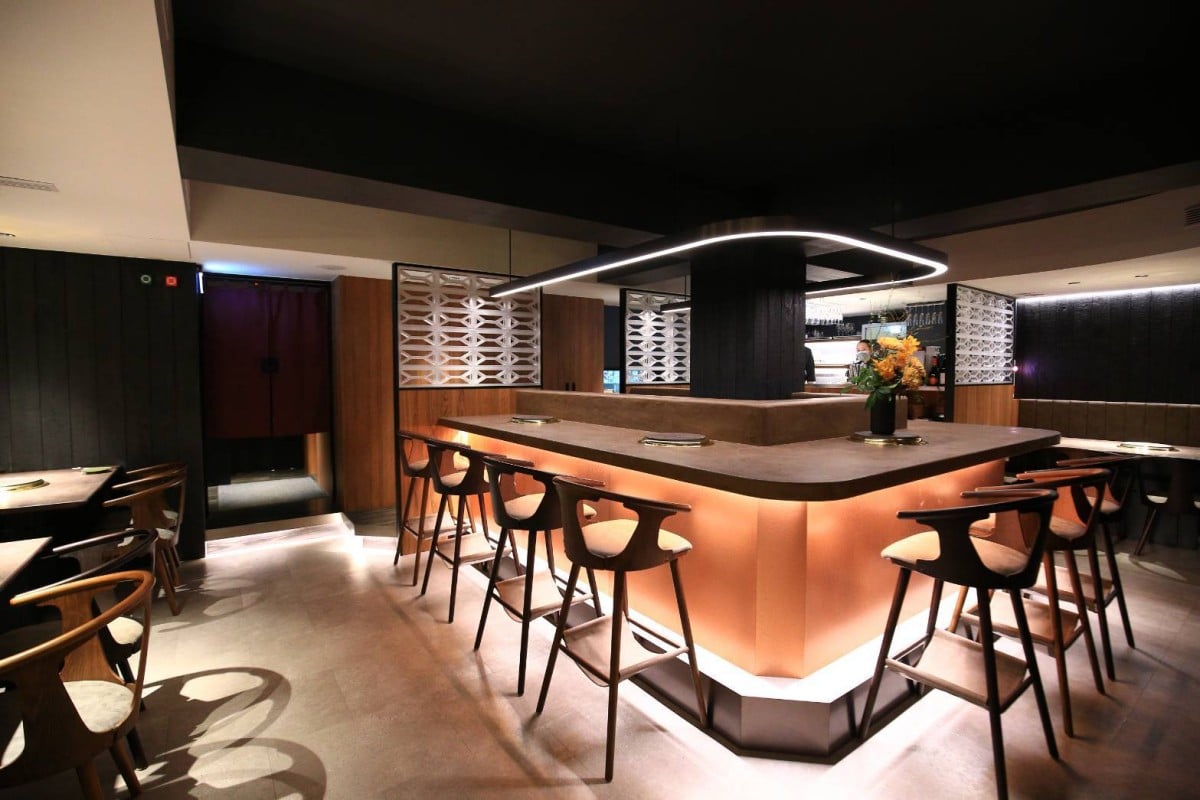 餐廳有著靜謐雅緻的環境,特別使用黑燒杉木牆面減少烤肉油膩的氣味,且整個用餐環境完全沒有油煙,讓大家在吃飯時都可以擁有舒適優雅的氛圍!妞妞們也可選擇吧台烤肉座位區,仿水泥台面設計非常有現代感~「熟・菜豚屋」還貼心地在靠牆部分設置隱藏式置物空間,可放包包等私人物品。