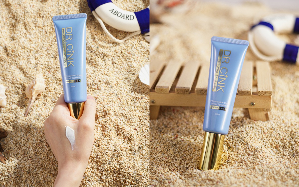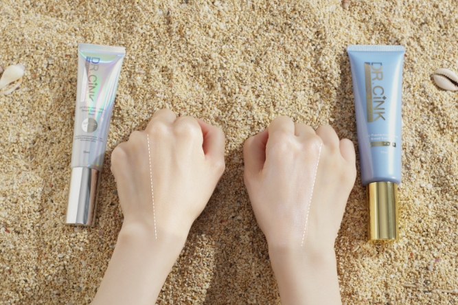 DR.CINK的防曬系列代言人是時尚女神胡小禎,她非常喜歡曬太陽、也喜歡把自己曬成小麥肌,但是小麥肌不代表不做防曬,因為防曬更重要的是:不能曬老、曬皺!小禎常主持外景節目,需要長時間在大太陽底下曝曬,這時候「防曬」是非常重要的一道防護,除了定時的補擦外,有效的成分才能真正保護到肌膚。所以小禎在節目空檔時,就會隨時注意補擦,且DR.CINK兩款禦黑防曬完全不黏膩,即使在帶妝的情況下補,妝容還是非常完美。
