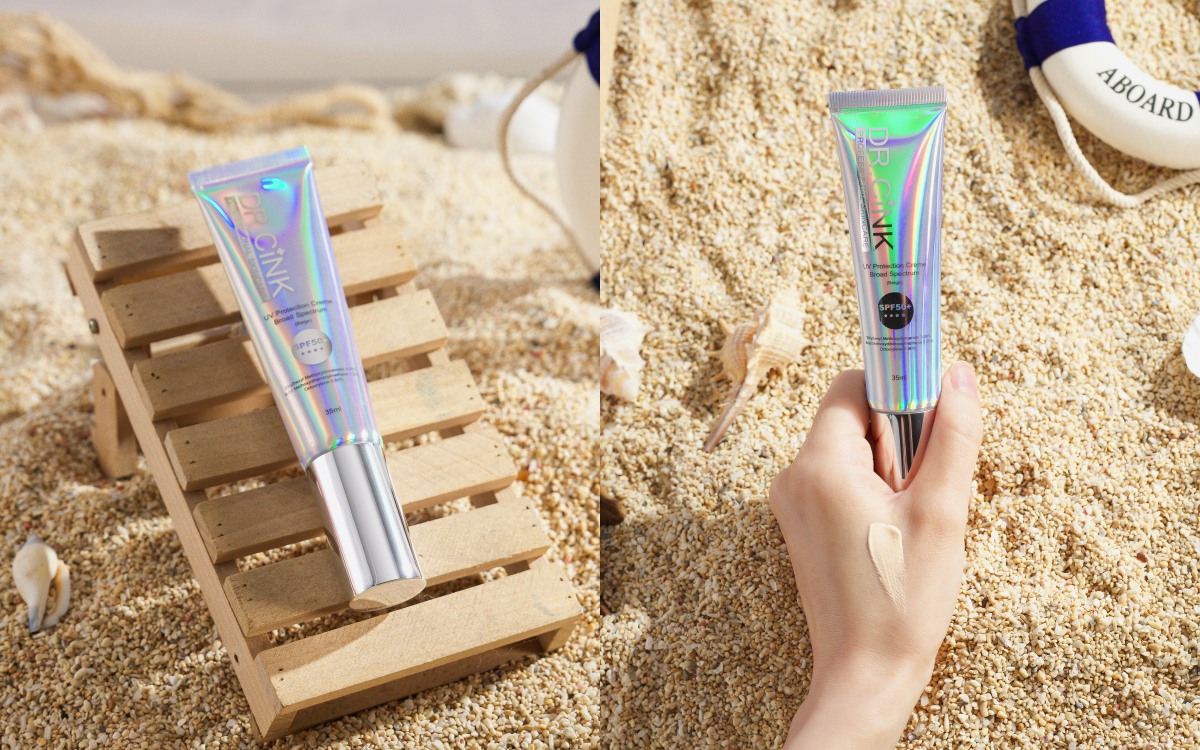 全新「禦黑高效光感防曬乳SPF50+ ★★★★(潤色)」以獨特的隔絕科技WOW(水包油包水)微米乳化系統,除了上述提及的「地中海稀有幻光毛蕊花」,另外結合「法國有機專利米胚芽防護素萃取」、純天然植物活萃「兩耳草防禦素」,擁有完整的防護和修護功能,保護肌膚不受光害! 就如產品名稱所示的「潤色」,這款防曬乳內含柔焦修片微球體,其特殊的吸油微球體擁有高延展、不黏膩、不悶厚的特性,一抹上瞬間減少細紋和瑕疵,彷彿為肌膚自帶濾鏡般的美肌效果,打造絲滑無瑕的膚色。最後,為了讓防曬舒適不厚悶,DR.CINK研發團隊將「複方舒緩素」融入其中,讓防曬乳在肌膚上形成一個保護層,增強皮膚的自我防禦機制,減少水分散失及損傷。