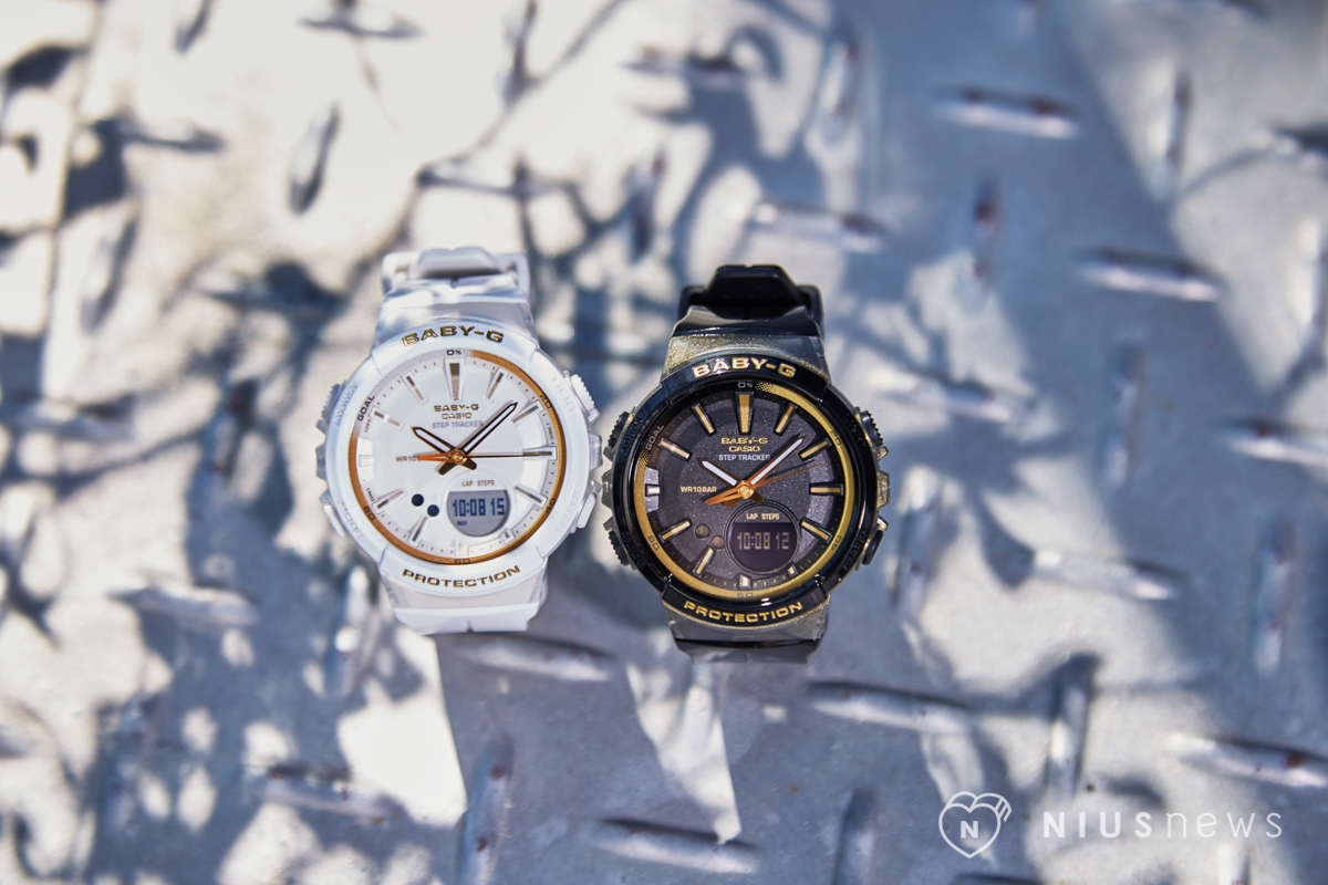 搭配百搭的BGS-100GS黑白色系-BGS-100-1A(黑)、BGS-100-7A(白)不只適合各種穿搭系列,金屬邊框讓女孩們運動時低頭看時間也能維持最時尚的姿態。