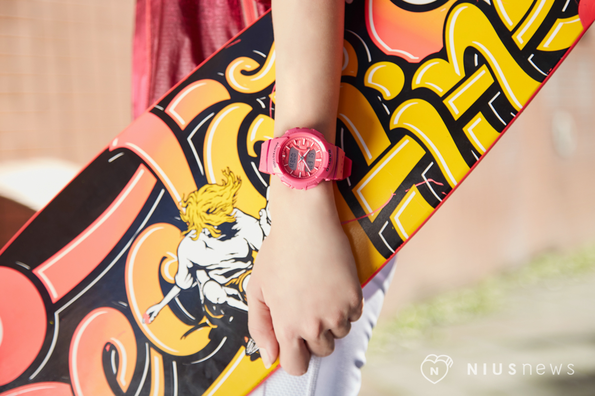 專業的功能加持外,BABY-G招牌的可愛外型亦是穿搭上的小亮點,繽紛的顏色著實讓少女心大爆發!錶帶上一顆顆孔狀設計,不只增加造型感,更能在運動時保持空氣流通、輕鬆散熱,讓人不再因為錶帶濕濕黏黏而討厭戴手錶。