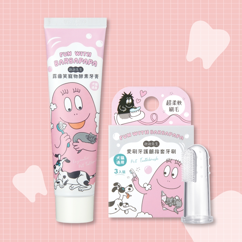 各位毛爸媽們,你知道天天都要幫家中的毛孩子刷牙嗎?跟人類一樣,若沒有好好刷牙,就容易導致口臭、牙齦發炎甚至牙周病等問題,甚至會衍生其他疾病!想要讓毛孩子乖乖刷牙,除了從小養成習慣、溫柔安撫外,搭配一款「好吃」的牙膏,也能提高對刷牙的接受度,這款泡泡先生露齒笑酵素牙膏,特別選用貓咪與狗狗都可以接受的雞肉風味酵素牙膏。獨特的四種天然酵素能消除口腔異味、去除齒垢,牙膏不含起泡劑,刷牙時無泡沫,使用更安心無虞。(記得刷牙後30分鐘不要再飲食或喝水喔!)特別搭配SGS認證,柔軟刷毛的指套牙刷,輕鬆呵護牙齦、好刷不滑脫,讓毛爸媽們可以更輕鬆地幫毛孩子刷牙。