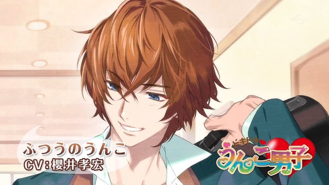「便便美男」顧名思義是擬人化的大便。嗯,就是這麼一回事。(妞編輯已心死,不願多做形容XD)「便便美男」看似出自於某款乙女向遊戲的截圖畫面,但其實並不是,這款遊戲並沒有真正問世,而是在日本知名漫畫改編的動畫《深夜!天才妙老爹》(深夜!天才バカボン)當中第10話出場的架空遊戲畫面。