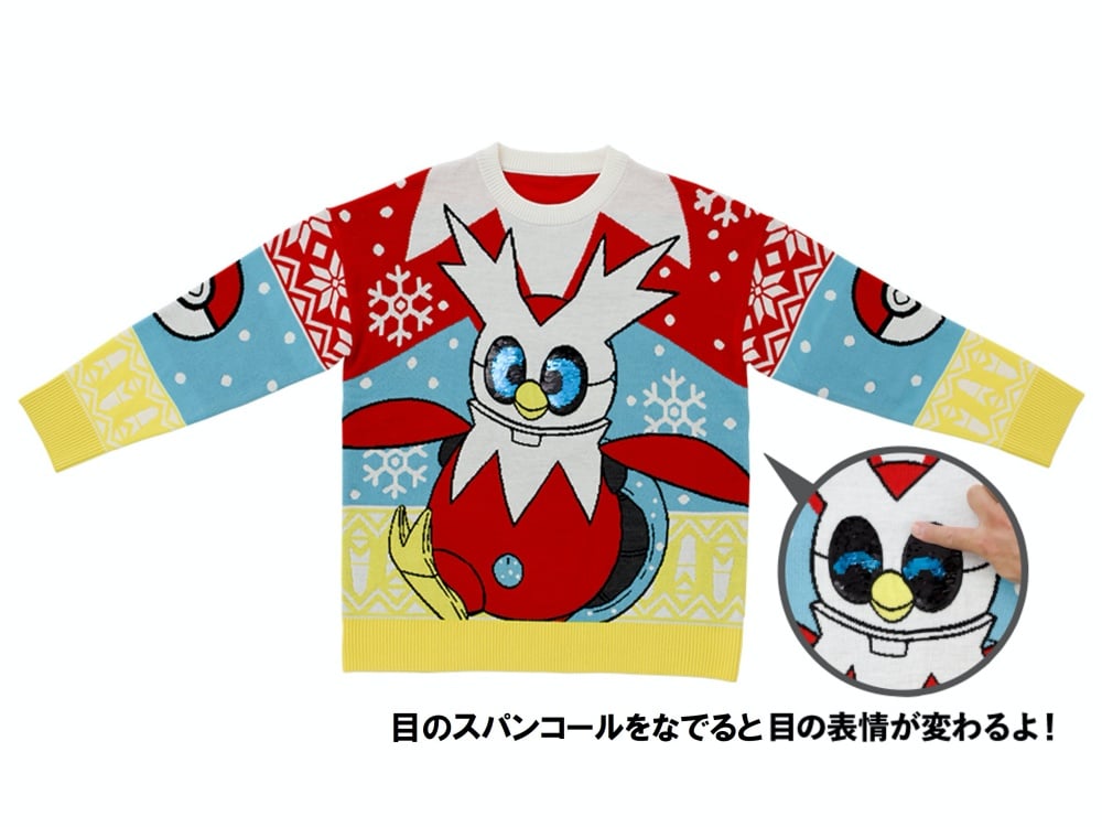 歐美聖誕習俗必穿的「聖誕醜毛衣」,今年以冰屬性的「鐵包袱」為形象設計,在眼睛部分還特別使用閃爍耀眼的亮片,只要用手觸模即可變化眼睛表情。相信小朋友一定會愛上。