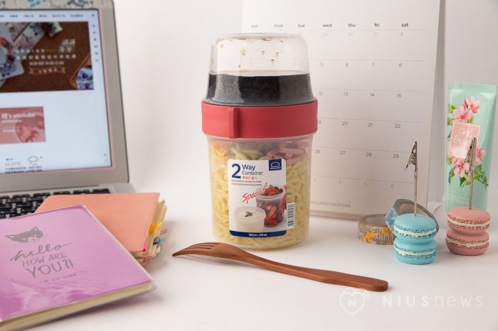 上班族三餐老是在外,往往吃得太過油膩或是蔬菜量不足的情況下,長期累積會造成身體的負擔。為了身體健康找著想,偶爾嘗試做菜帶便當吧!只要將黃麵煮過之後放涼,再把喜歡的配料(小黃瓜、胡蘿蔔或是蛋皮)切絲放入中容量(560ml+310ml)的樂活杯,另一邊裝入清爽的和風醬料,一份符合夏季又爽口的午餐。冰涼的涼麵放在冰箱內,等到想吃的時候再把它們mix在一起就好,吃下的不僅是滿滿der健康更能排除夏季的悶熱感。