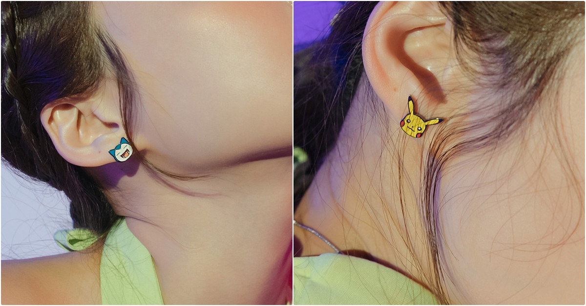 低調派妞妞則可以選擇「寶可夢金屬耳環」、「皮卡丘剪影耳環 」,分別以316L鈦鋼更拒敏,金、銀、玫瑰金的簡約單色設計製作,皮卡丘款式特別搭配招牌閃電尾巴組成SET,仔細看才能發現有梗亮點~