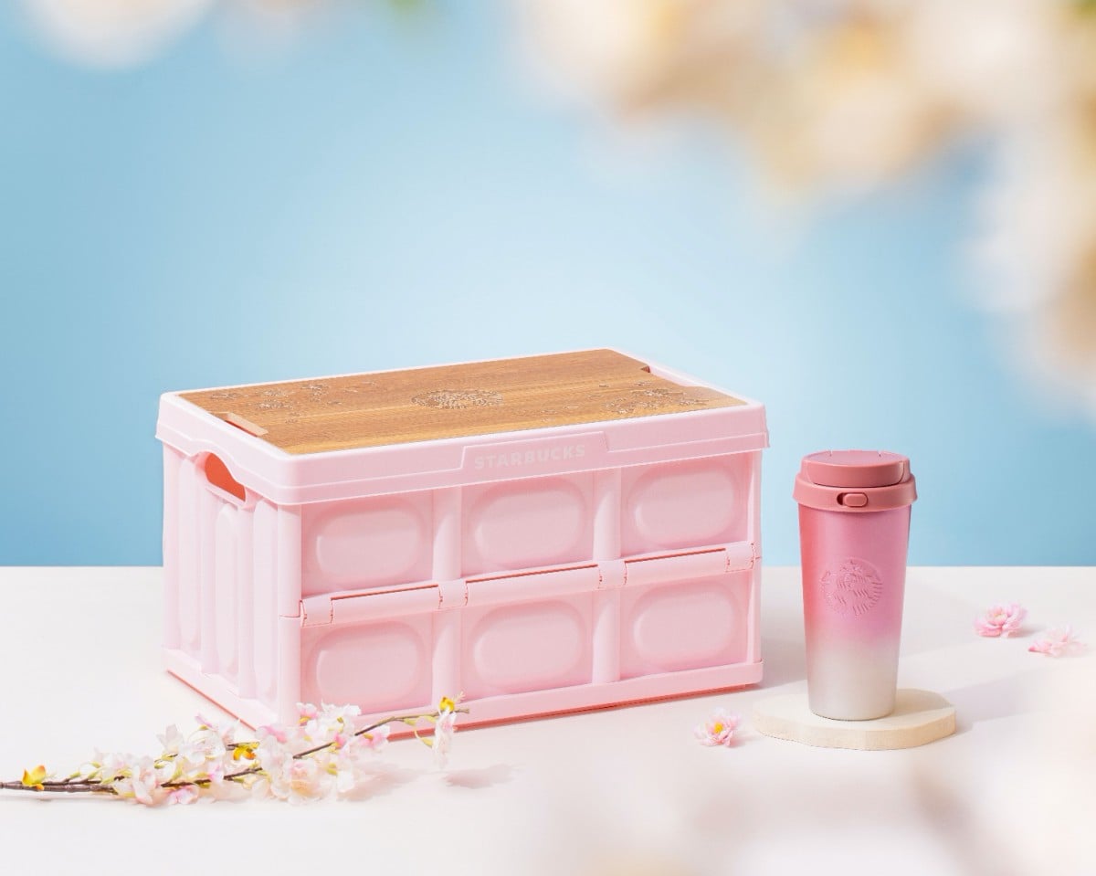本次星巴克的金星禮也以夢幻櫻花粉為靈感,推出以柔和粉嫩色調與溫潤木紋交織的「櫻花木蓋折疊收納箱」,還有將櫻花漸層色彩暈染於杯身的「漸層粉不鏽鋼彈蓋杯」,為大家獻上專屬的春日浪漫。