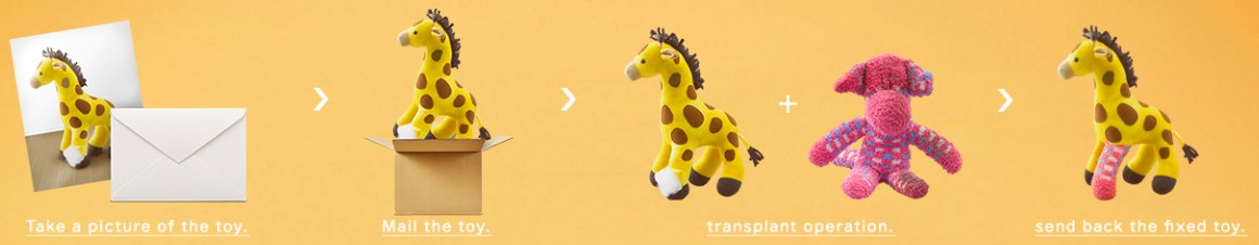 「Second Life Toys」於是發起修復玩具的活動,將你可以捐贈或需要修復的玩具寄給他們,他們會把一個娃娃的完整部位「移植」到損壞娃娃的身上。