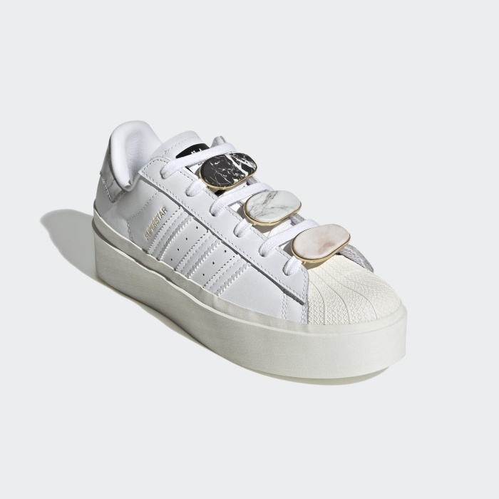 adidas Originals最經典的當家鞋款Superstar自從推出後就熱賣至今,又陸續推出不同的配色與聯名,近年也將這款鞋加上了厚底的設計推出各種特色款,這雙則是加入了高質感的大理石紋細節,無論是鞋跟後的三葉草壓印皮標到鞋帶上搭配的金屬感金邊大理石裝飾扣環,都讓這雙復古休閒鞋有了亮眼特色,絕對是喜歡經典鞋型又不想撞鞋的好選擇。